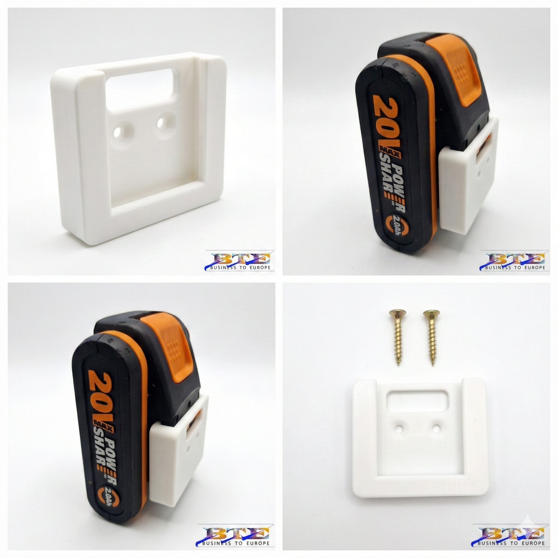 Wandhalterung für Worx 20V Akkus – Set inkl. Schrauben – Weiß – BTE Deutschland